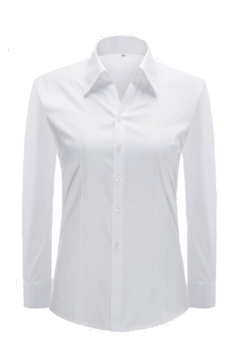 品名:女長(zhǎng)袖V領(lǐng)襯衣;版型:修身版 ;貨號(hào):YW4506;面料:Y4506;顏色:白色明斜紋 ;Fabric:C45/T55/
