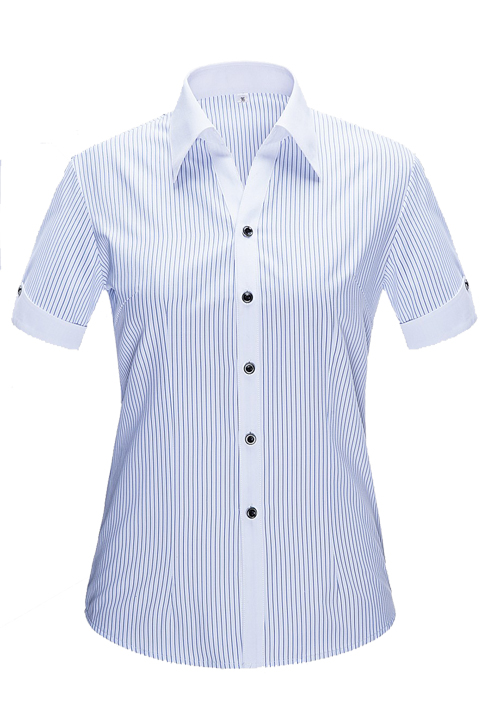 • 產品簡介:品名:女短袖v領襯衣;版型:修身版;貨號:YWD3006 ;面料:Y3006;顏色:藍寬細條紋 ;Fabric:C30/T48/TS22