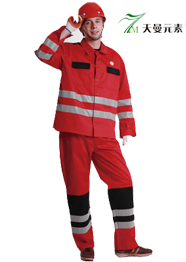 面料:純棉,防油,防水,放靜電,防火阻燃,20*16,240gsm;夾克前門襟塑脂紐扣,兩個帶蓋胸兜;前門刀塑脂拉鏈褲子,兩個斜插褲兜;兩條5CM反光條環繞衣前后和雙臂及雙褲腿。[查看]